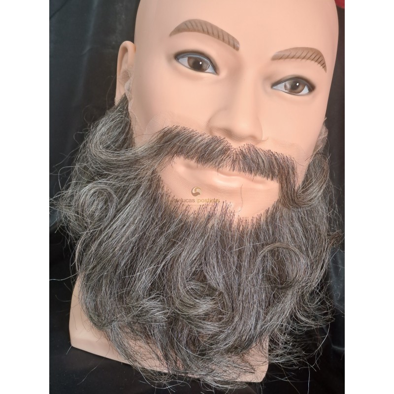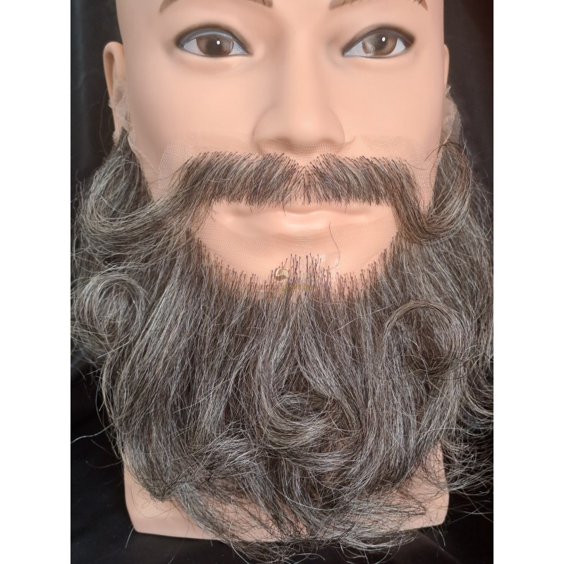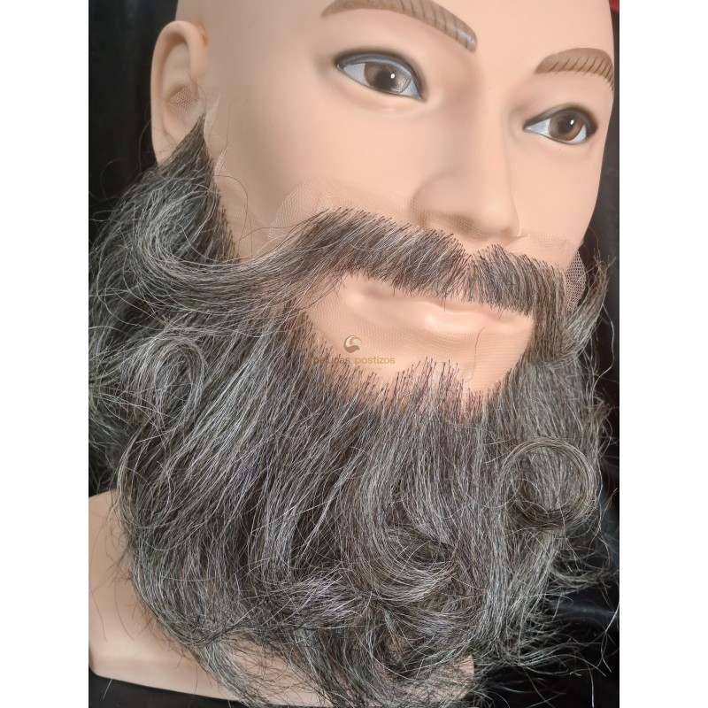 Barba y bigote confeccionados a mano en pelo natural indicados, por su naturalidad y realismo, para la caracterización en Artes Escénicas, Fiestas de Moros y Cristianos o cualquier evento especial que precise lucir una apariencia totalmente autentica.