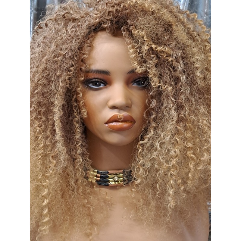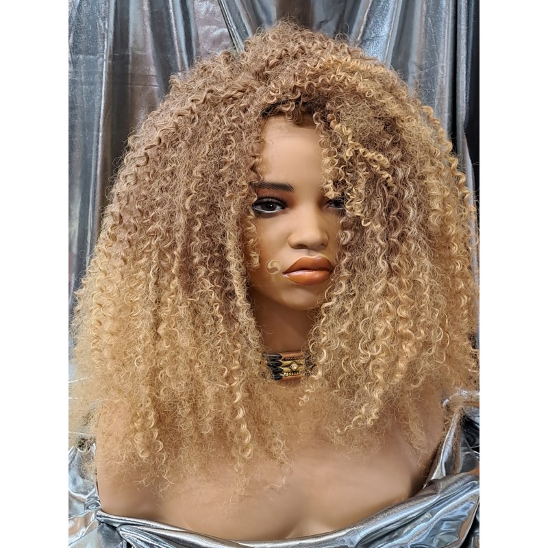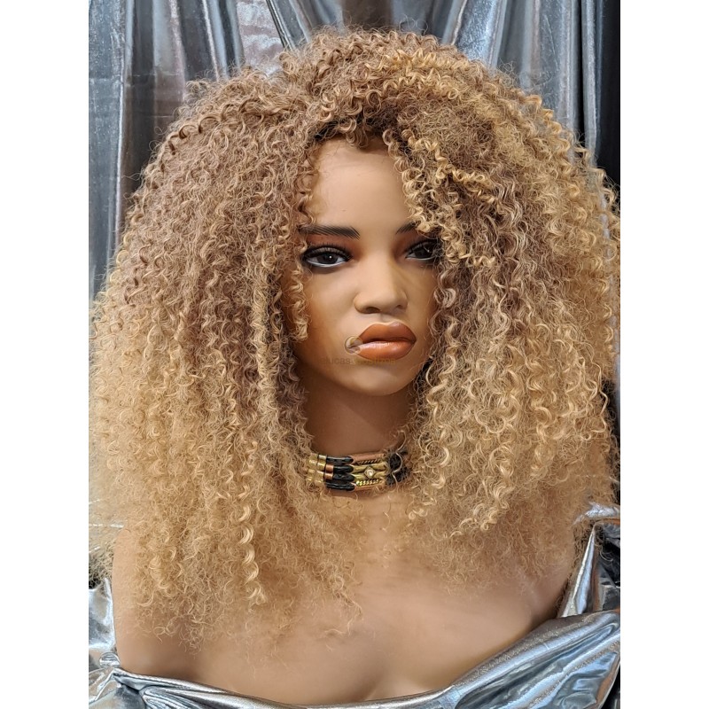 Rizos suaves y esponjosos en color rubio medio degradado el cual aporta una gran naturalidad a esta bonita peluca.