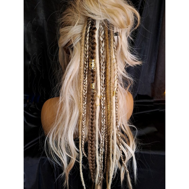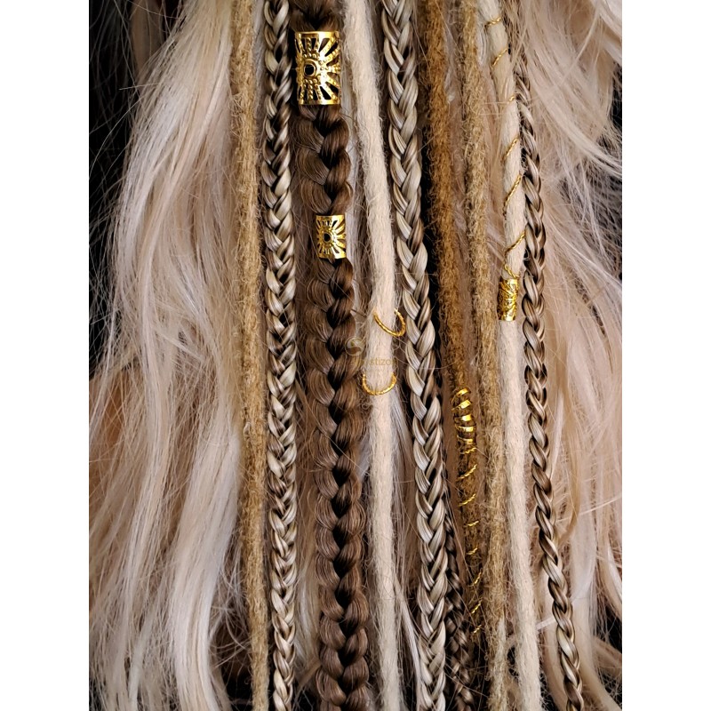 Coletero de diez rastas y trenzas con adornos en oro o plata, para fiestas o uso diario, con el que le darás un toque bohemio y diferente a tu peinado, de muy fácil aplicación para que puedas ponértelo tu misma.