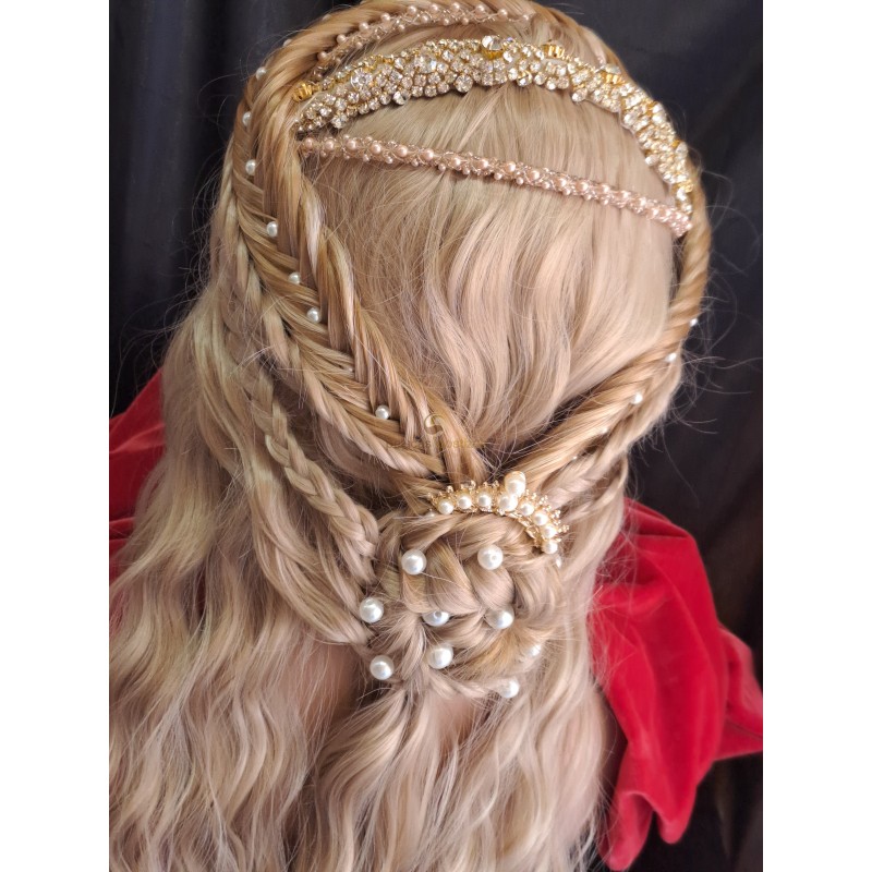 Peluca Princesa Medieval Con Joyería Color Oro.