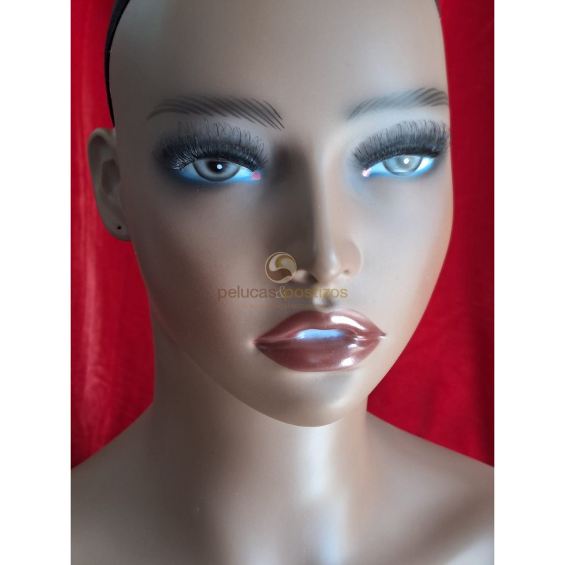 Cabeza de maniquí con busto para exposiciones o escaparates, con orejas perforadas para pendientes y pestañas realistas.